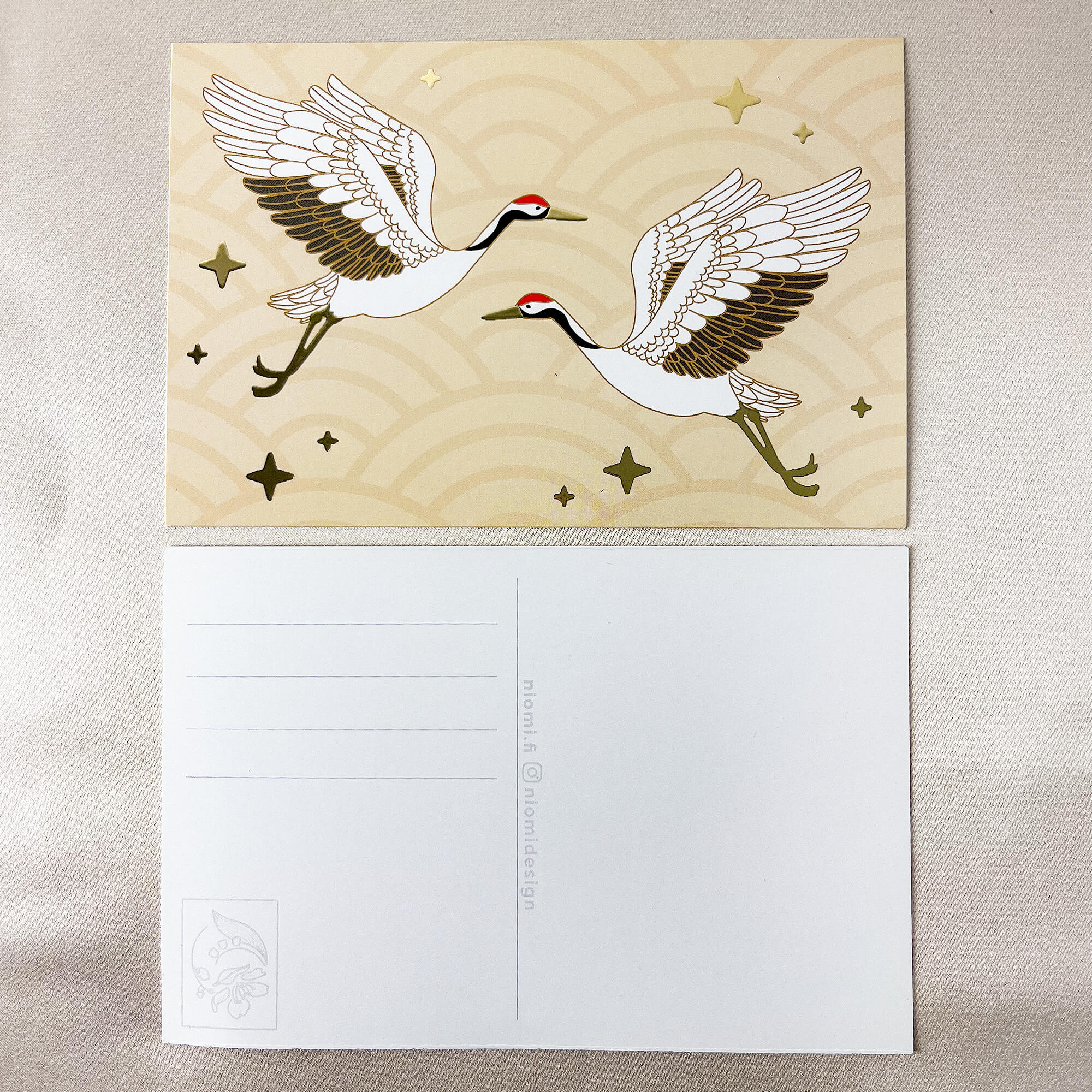 Niomin kaunis Kurki-aiheinen kortti kultafolioinnein. Olemme aikoinaan tilanneet hieman liian suuren määrän kortteja, jotka haluaisimme nyt saada varastostamme eteenpäin. 💛 Nappaa tästä upeat kortit huokeaan hintaan.